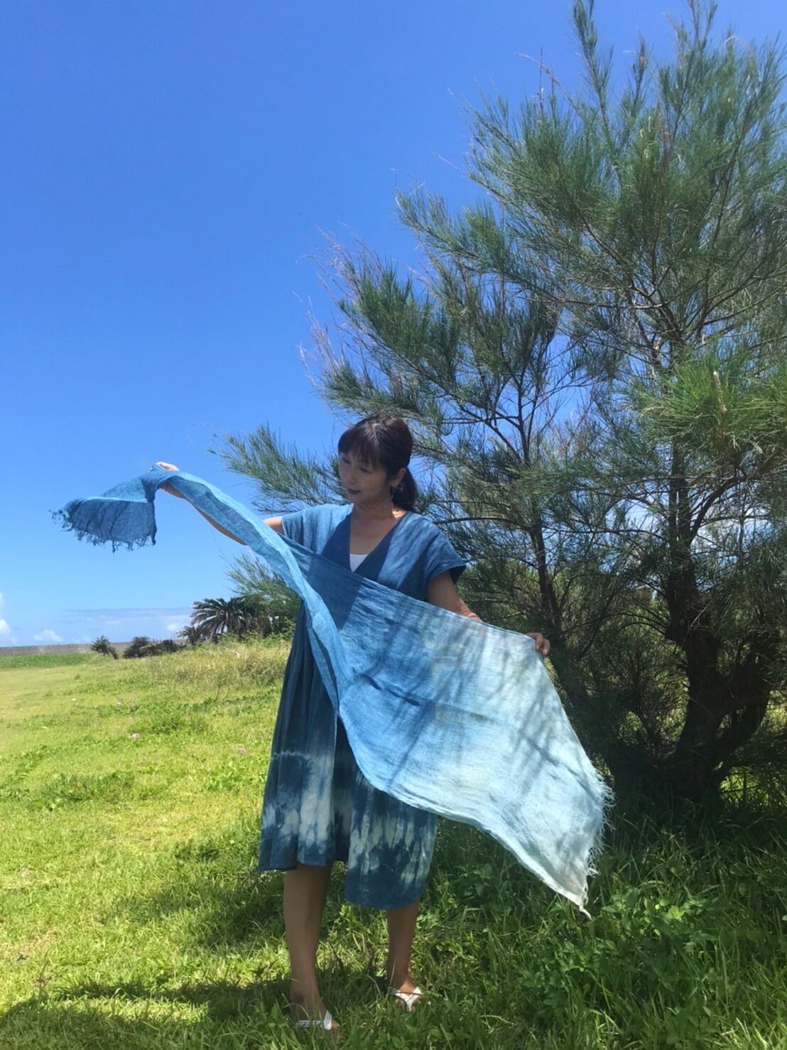 藍染めと大麻ヘンプの最高に相性の良いストールです。